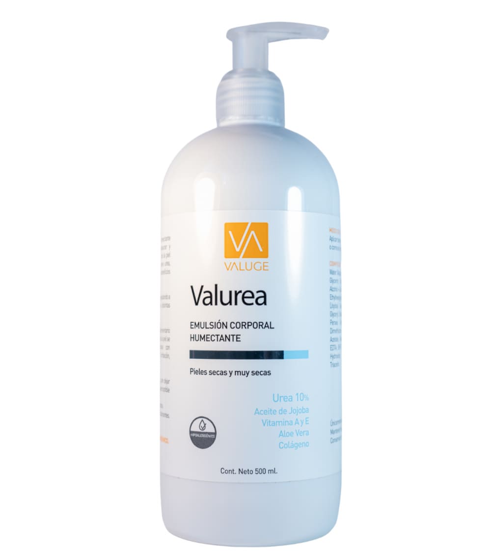 Valurea Urea 10% Emulsión corporal hidratante para pieles secas y muy secas. Ayuda a restaurar y fortalecer la barrera protectora de la piel seca, dañada o sensible.